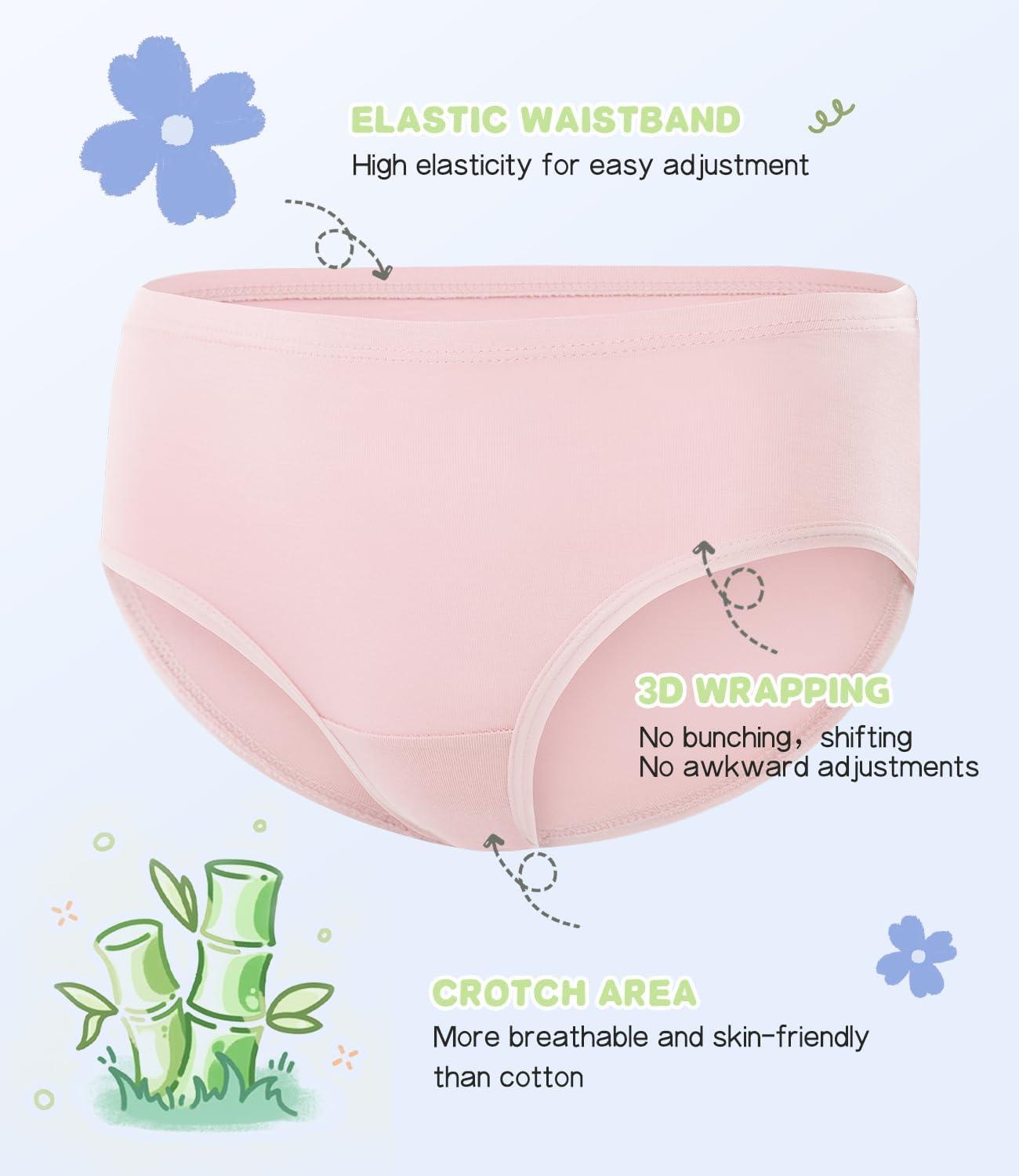 BAMBOO COOL Girls Underwear Breathable Moisture-Wicking 6-14Y Panties Lightweight Soft Sensory Friendly Briefs 6 Pack(Multicolored-a-6 Packs)