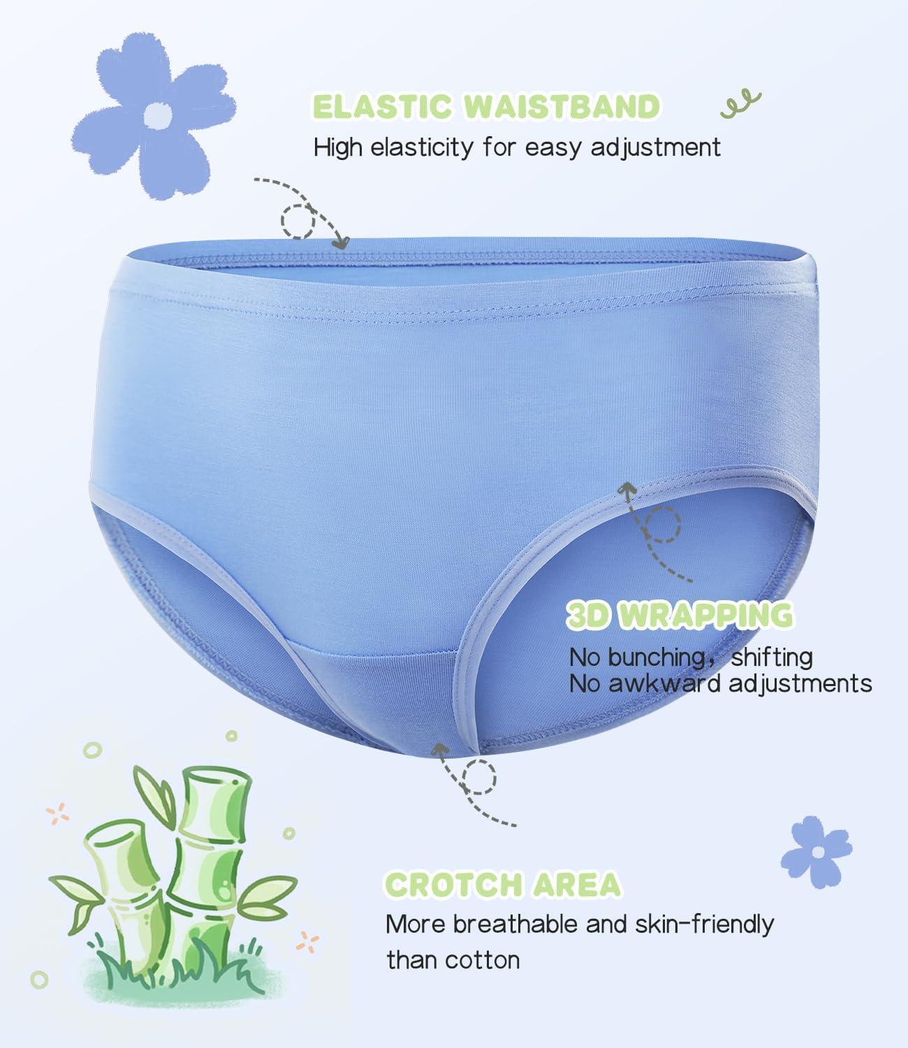 BAMBOO COOL Girls Underwear Breathable Moisture-Wicking 6-14Y Panties Lightweight Soft Sensory Friendly Briefs 6 Pack(Multicolored-d-6 Packs)