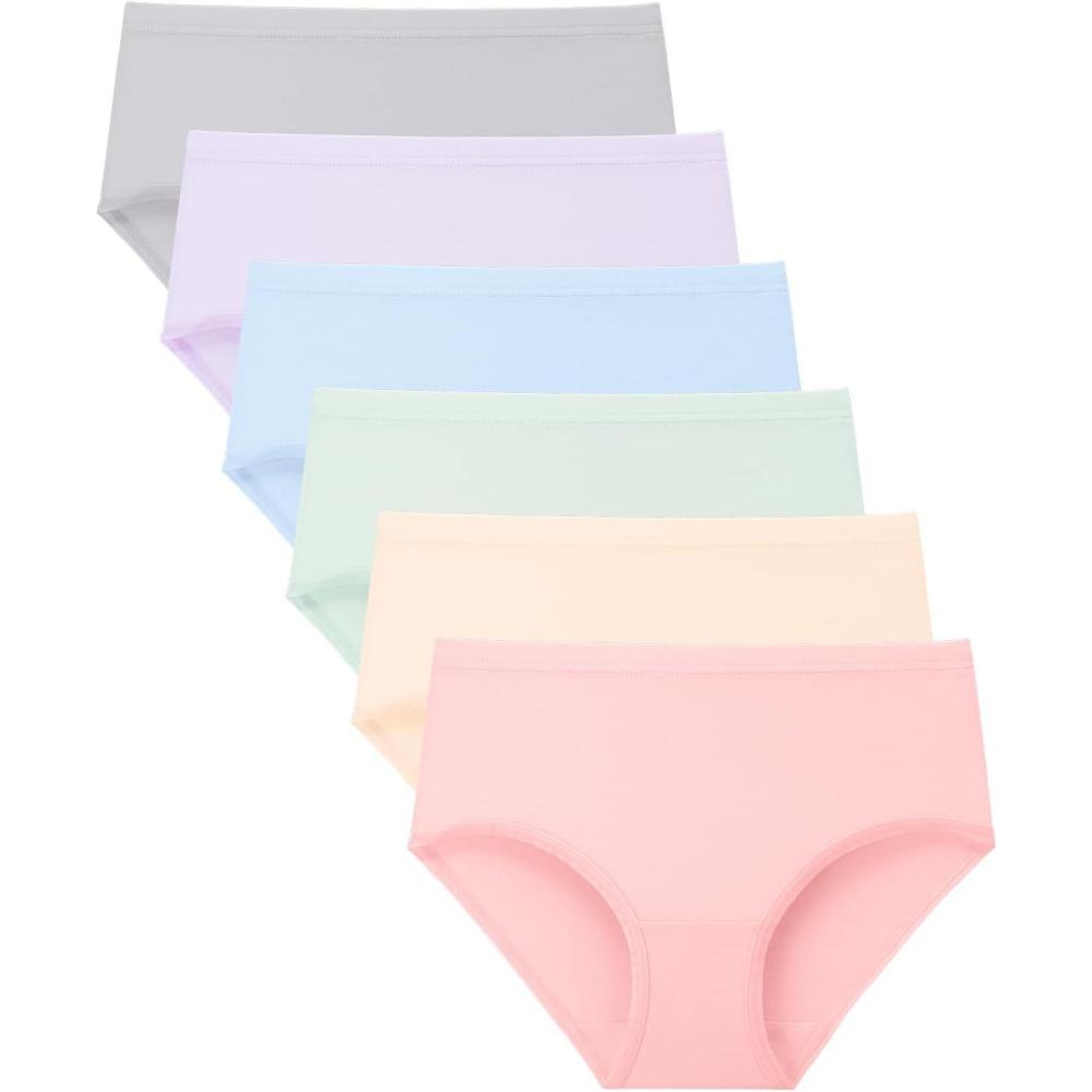 BAMBOO COOL Girls Underwear Breathable Moisture-Wicking 6-14Y Panties Lightweight Soft Sensory Friendly Briefs 6 Pack(Multicolored-e-6 Packs)