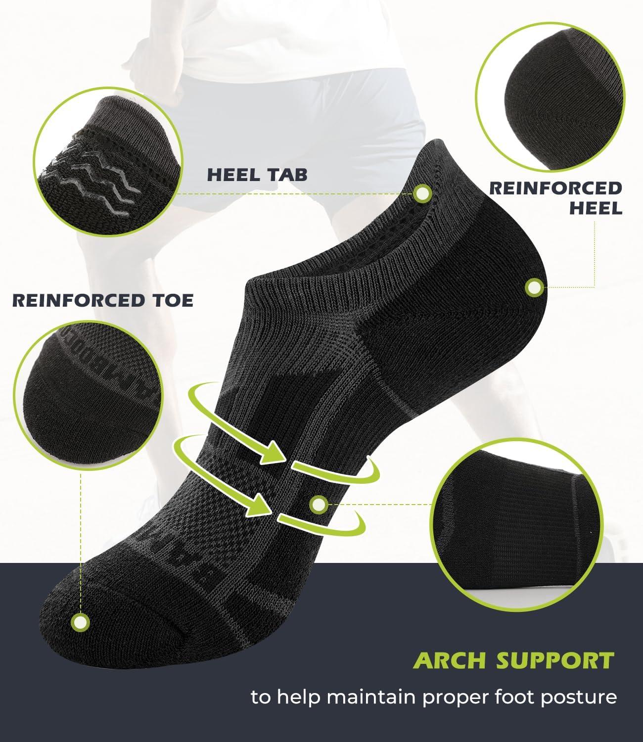 BAMBOO COOL Men’s No-Show Socks Low Cut Breathable Moisture-Wicking Socks Non Slip Running Workout casual, 6 Packs(Black*3 white*3)