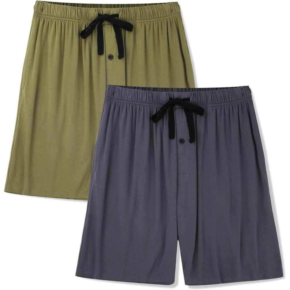 BAMBOO COOL Men’s Pajama Bottoms Soft Comfy Breathable Lightweight Sleepwear Lounge Pajamas Shorts with pockets 2 Pack(Dw-2b-rock Gray-green)