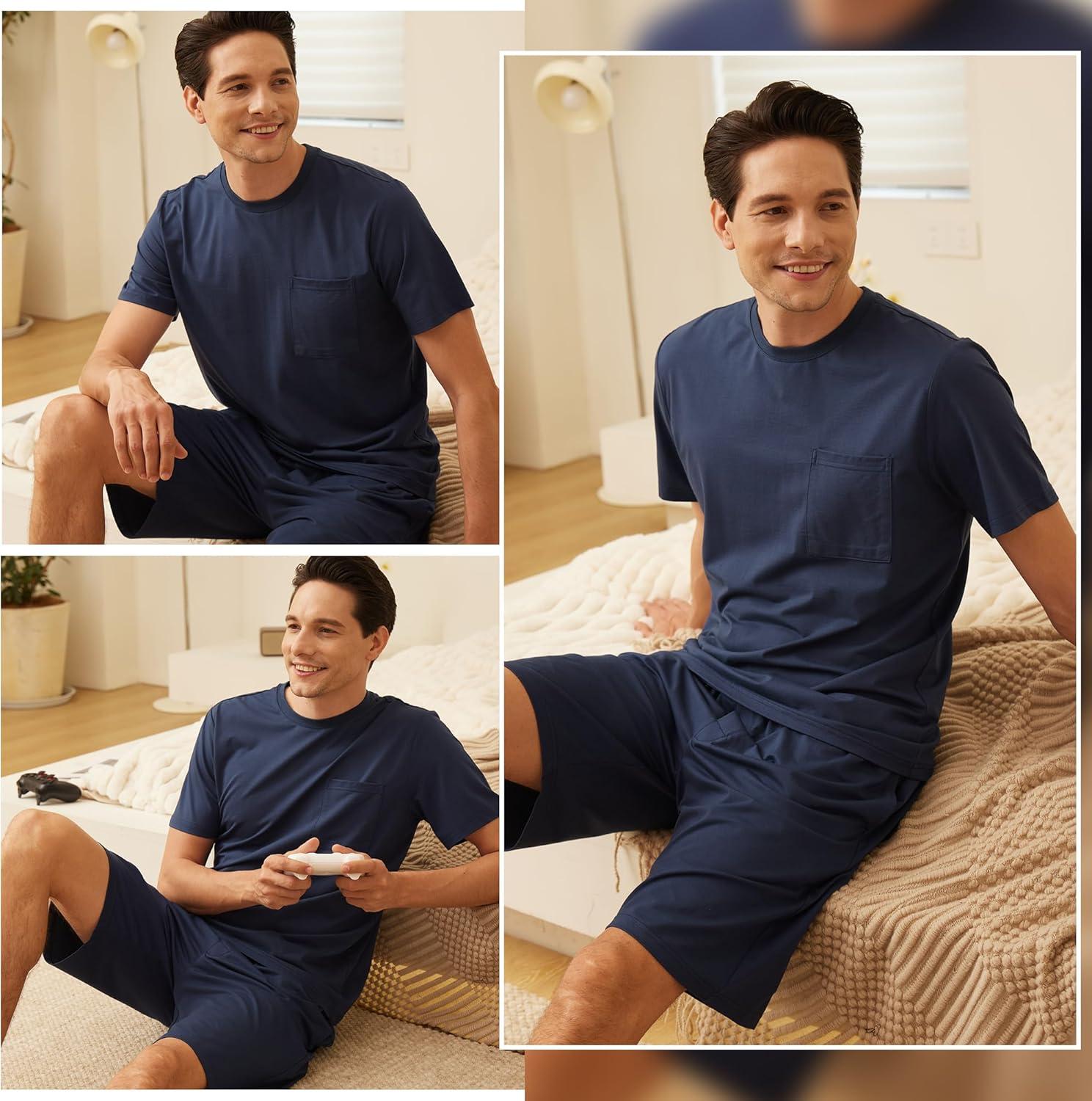 Be the first to review “BAMBOO COOL Mens Pajama Set Sleepwear Pjs Lightweight Short Sleeve Shirts Soft Breathable Fresh Sleep Sets with Pockets S-3XL(A-blue)”