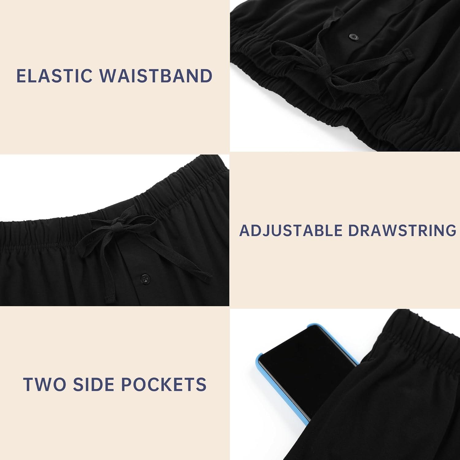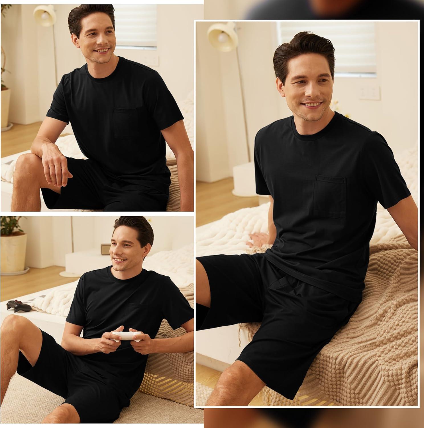 BAMBOO COOL Mens Pajama Set Sleepwear Pjs Lightweight Short Sleeve Shirts Soft Breathable Fresh Sleep Sets with Pockets S-3XL(C-black)