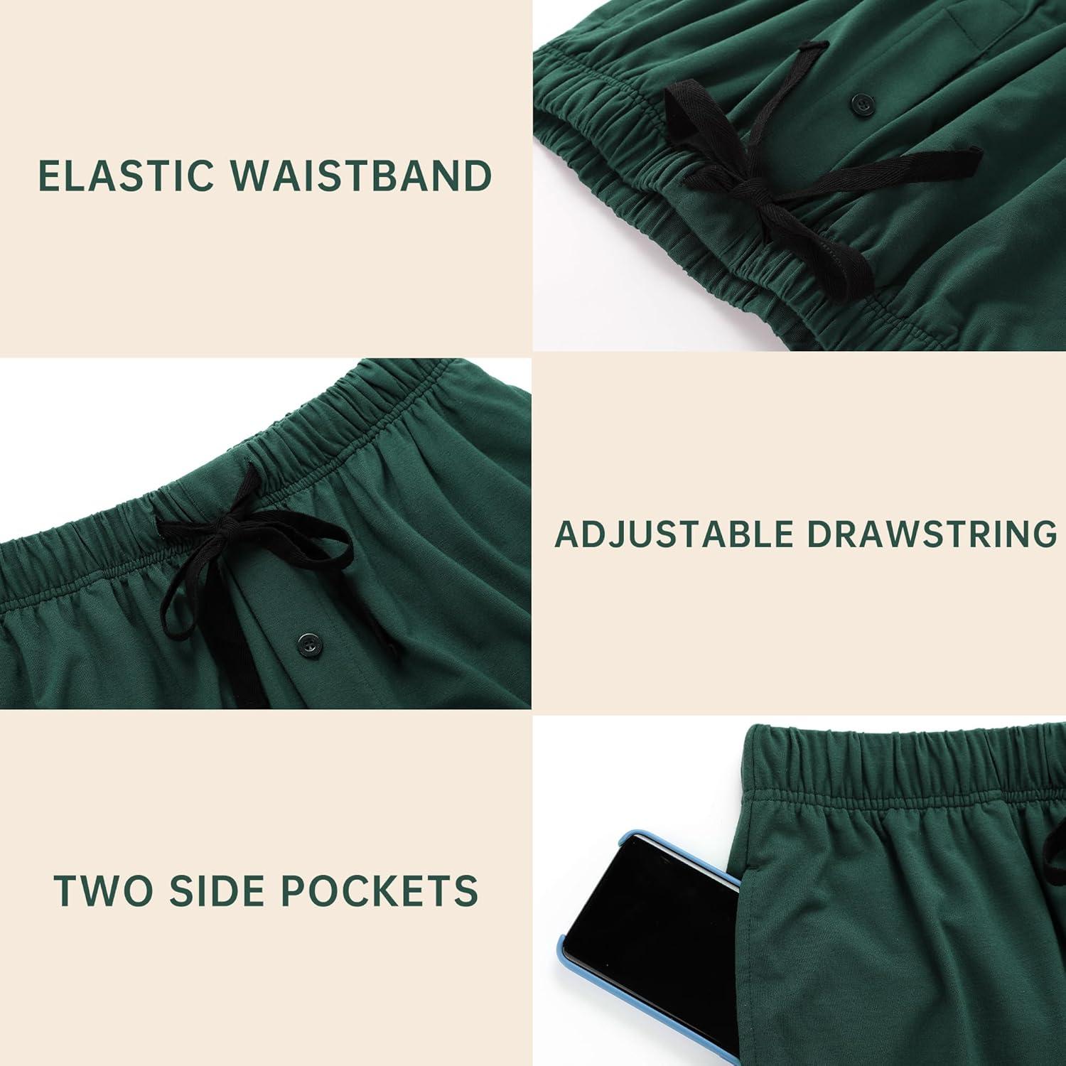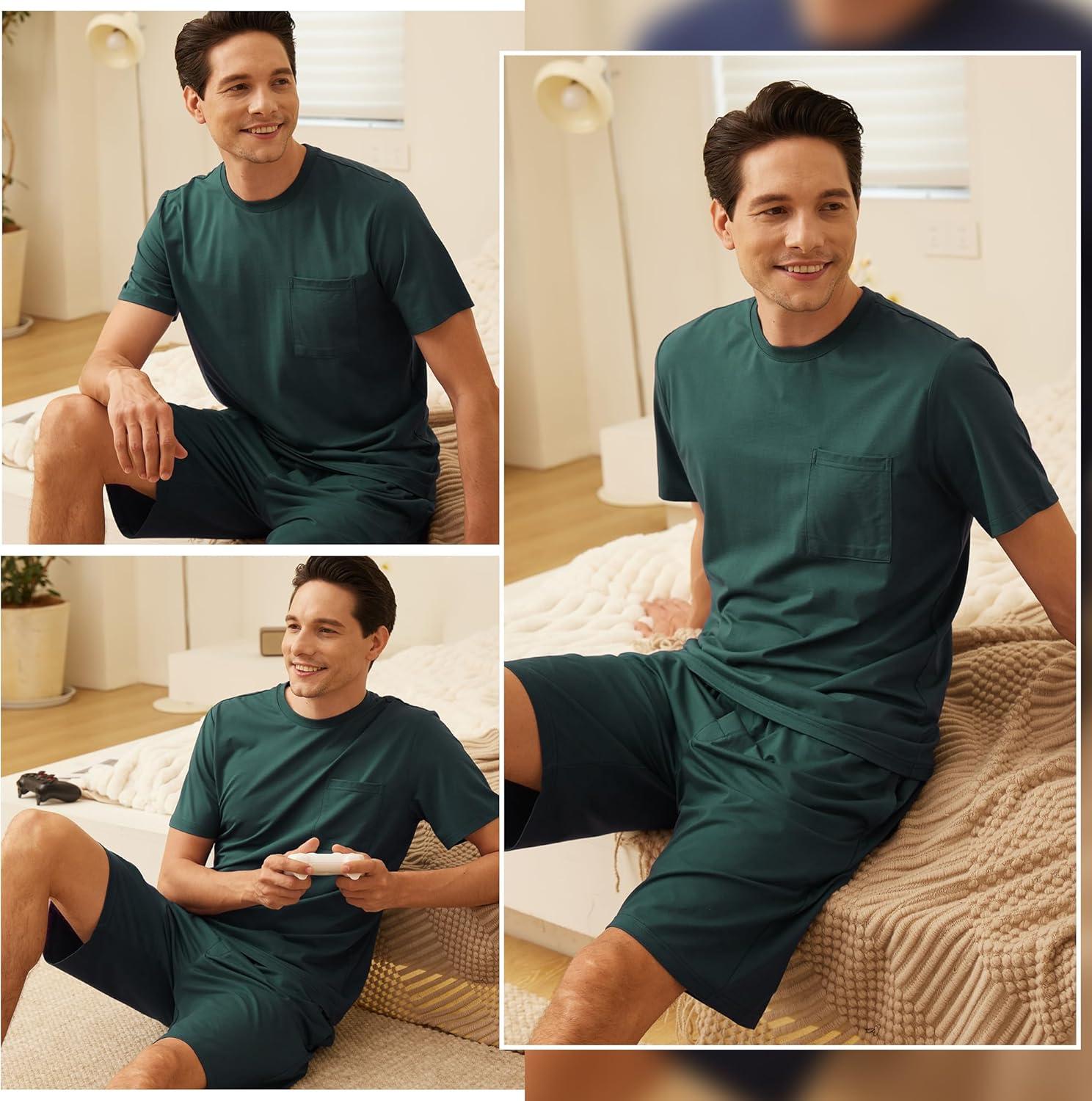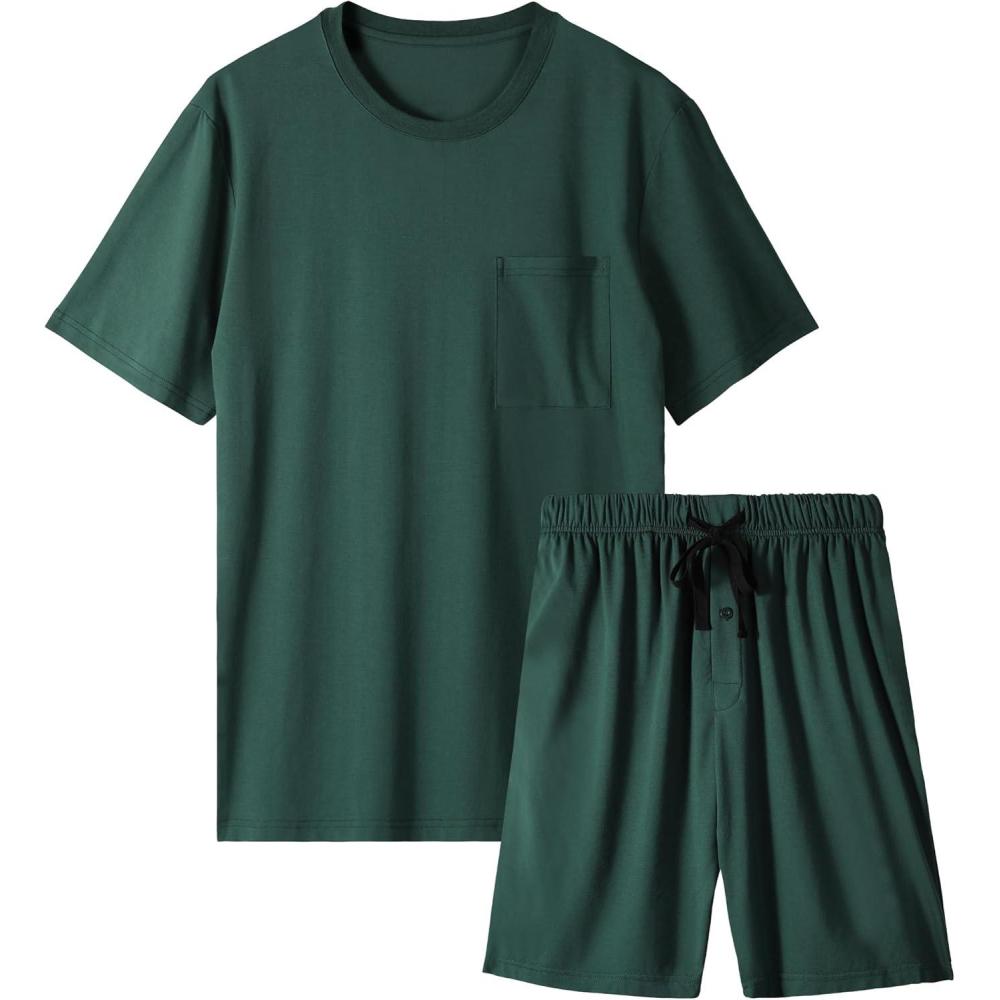 BAMBOO COOL Mens Pajama Set Sleepwear Pjs Lightweight Short Sleeve Shirts Soft Breathable Fresh Sleep Sets with Pockets S-3XL(D-green)