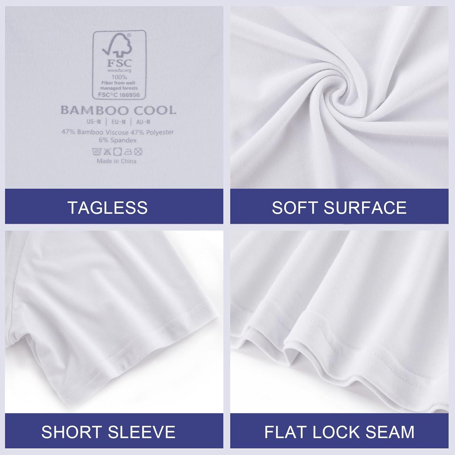 BAMBOO COOL Men’s Undershirt Moisture-Wicking T-Shirts Stretch Crewneck Soft Tees for Men,3 Pack(Crewneck-white*5)