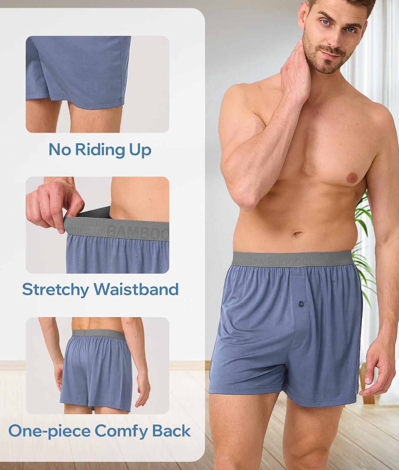 BAMBOO COOL Soft Men’s Boxer Shorts 3 Pack,Silk Feeling Underwear for men with Button Fly,Breathable Loose Fit Boxers(A-multicolor-3 Pack)