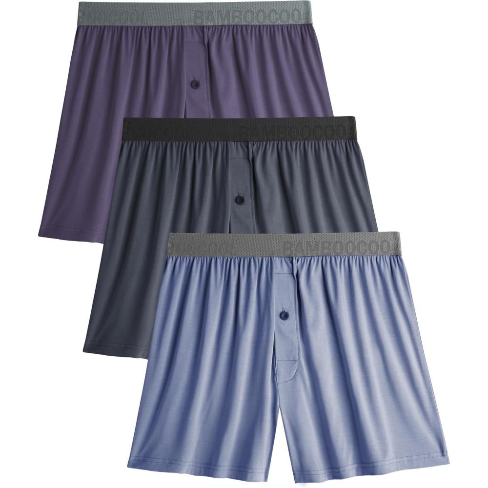 BAMBOO COOL Soft Men’s Boxer Shorts 3 Pack,Silk Feeling Underwear for men with Button Fly,Breathable Loose Fit Boxers(B-multicolor (3-pack))