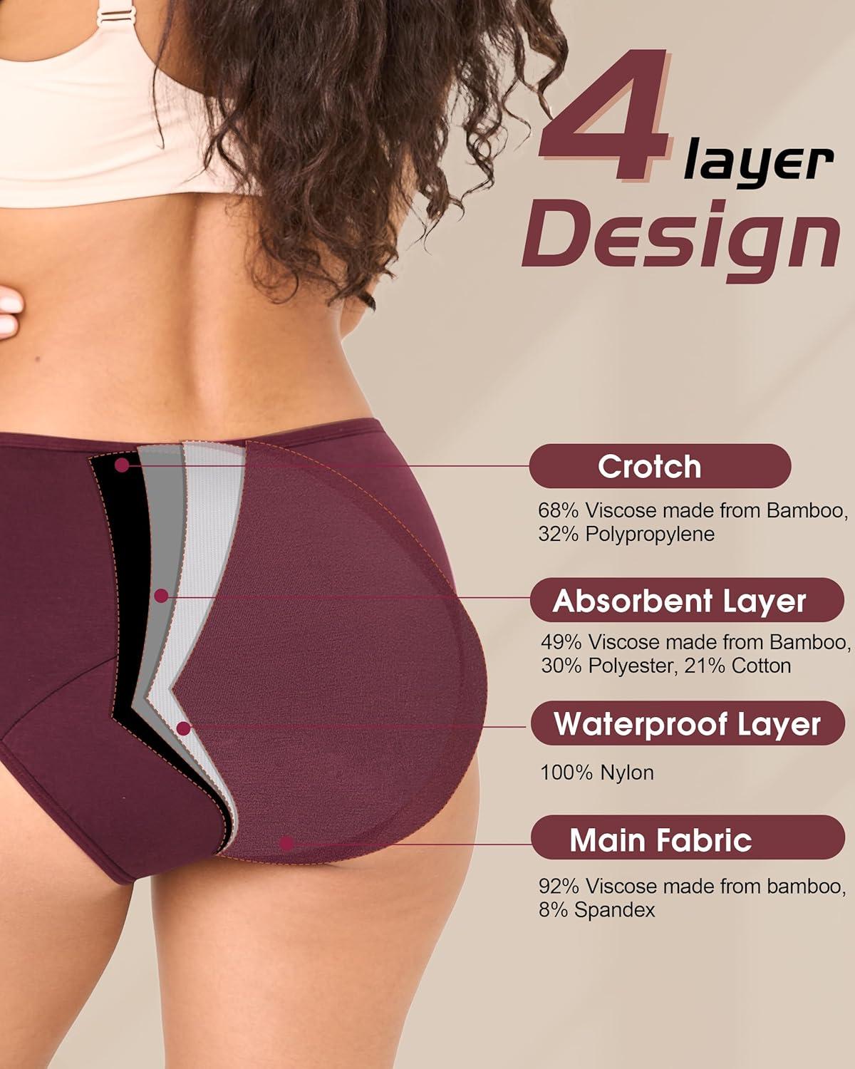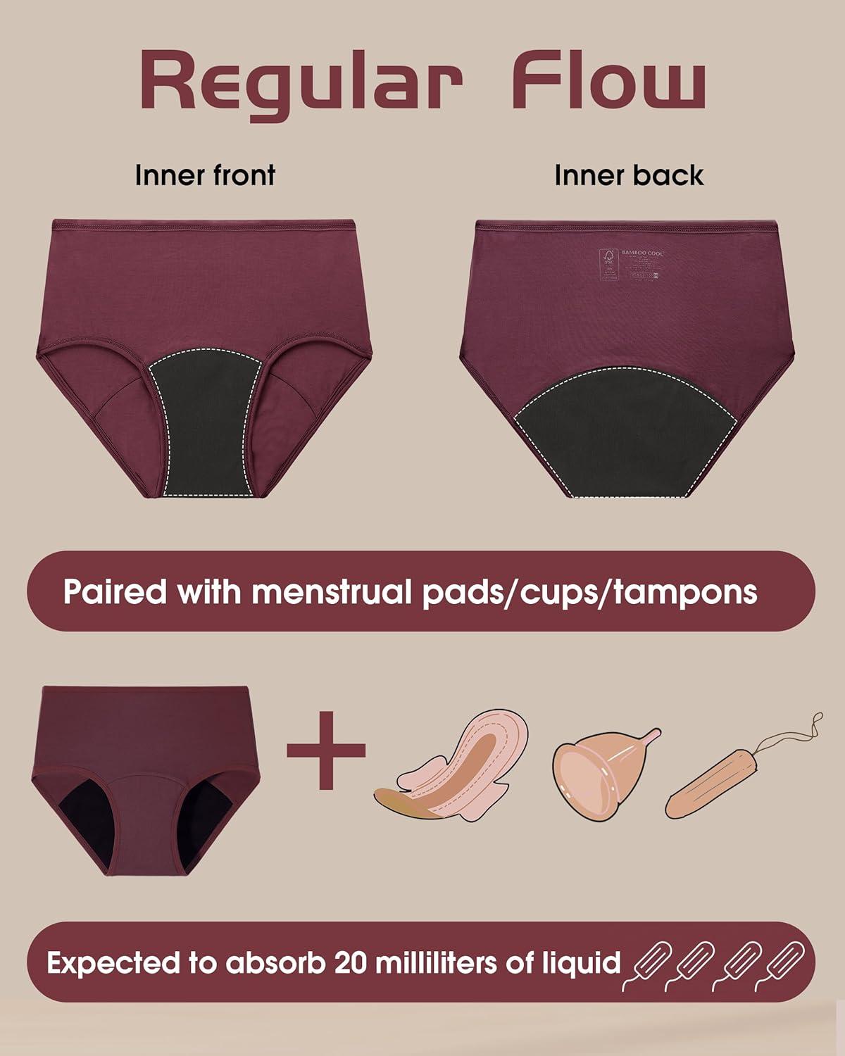 imageBAMBOO COOL Womens Period Underwear High Waisted Leakproof Postpartum Maternity Panties Soft Breathable Absorbent3 PackHeavy Flow D3pack