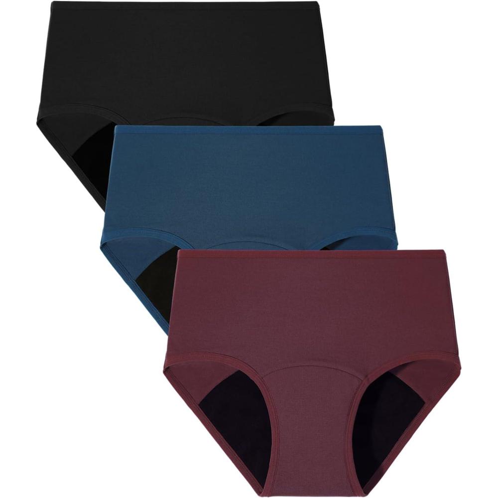 BAMBOO COOL Womens Period Underwear High Waisted Leakproof Postpartum Maternity Panties Soft Breathable Absorbent,3 Pack(Heavy Flow D(3-pack))