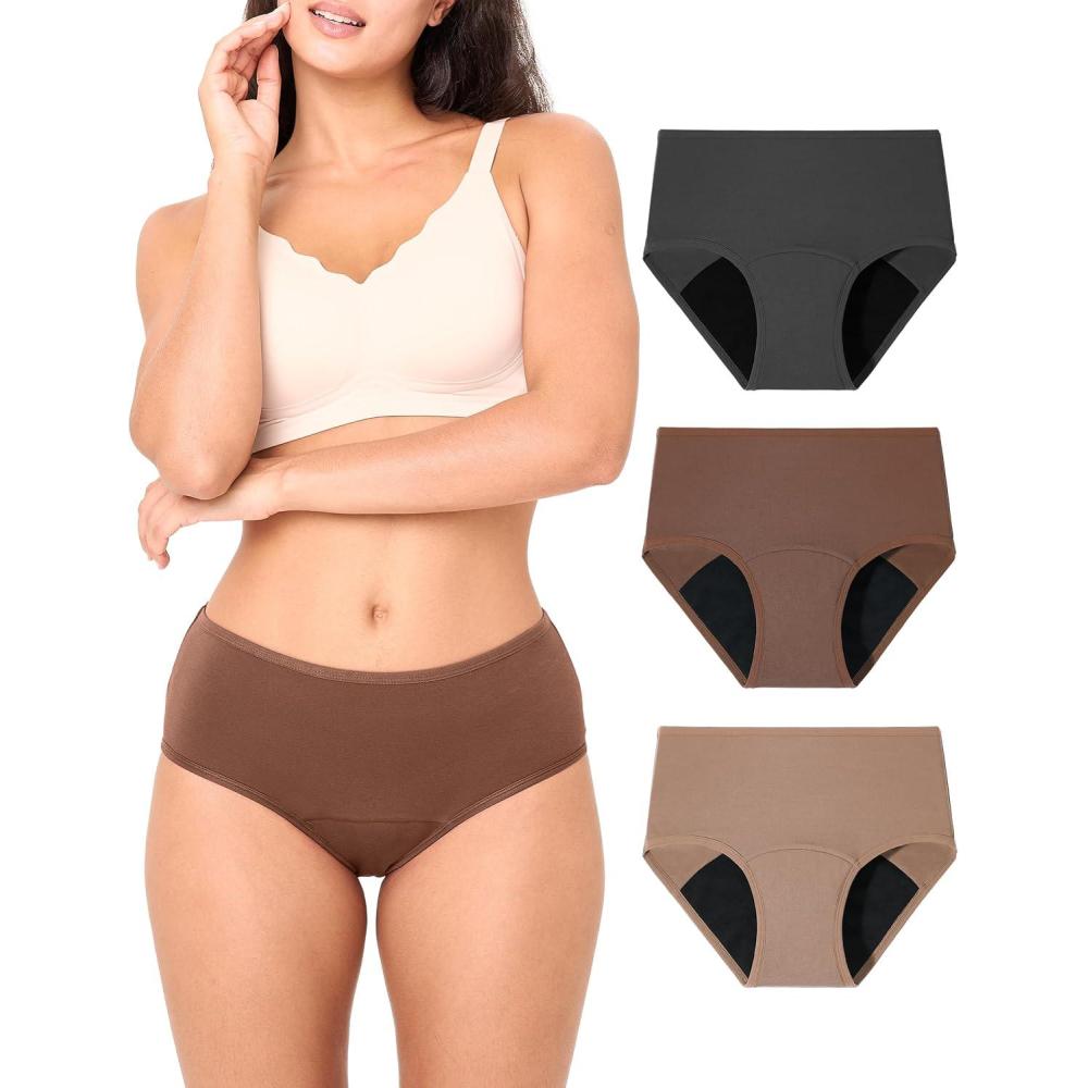 imageBAMBOO COOL Womens Period Underwear High Waisted Leakproof Postpartum Maternity Panties Soft Breathable Absorbent3 PackLight Flow E3pack